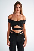'KENDALL + KYLIE' GATHERED CROPPED TOP WITH CUT-OUT DETAIL