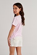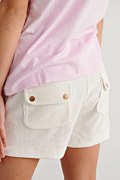 Girls monochrome terry shorts. Elastic waistband for a firm fit and decorative drawstring. Patch pockets on the front and snap-flap pockets on back. Short length. Regular fit. Model wears size 8, height: 1,30cm.