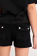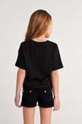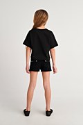 Girls monochrome terry shorts. Elastic waistband for a firm fit and decorative drawstring. Patch pockets on the front and snap-flap pockets on back. Short length. Regular fit. Model wears size 8, height: 1,30cm.