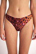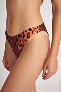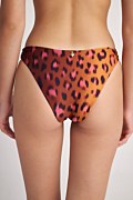 Leopard printed bikini slip. Twist details at sides and moderate back coverage.