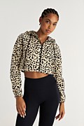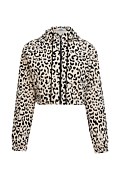 This stylish and cozy crop jacket seamlessly blends fashion and functionality to keep you warm and on-trend all day. Leopard printed, long sleeved cotton hooded crop jacket with inner soft fleece fabric and bands in the sleeves. Front zipper closure. Adjustable drawstrings on the hood. Relaxed, loose fit. Warm and soft, suitable for all day. Model wears size S: Height: 1,75cm, Bust: 82cm, Waist: 65cm, Hips: 96cm.