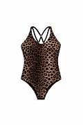 LEOPARD PRINTED ONEPIECE SWIMSUIT WITH CROSSED STRAPS