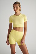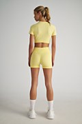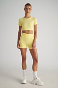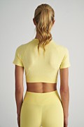 Seamless sports cropped top in allover leopard print. Scoop neckline, short sleeves and 'WORK IT OUT' logo at the front side. It's quite elastic and suitable for fitness and not only. Slim fit. Combine with the leggings 25845032 for a perfect look.