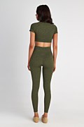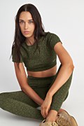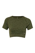 Seamless sports cropped top. Allover leopard print, scoop neckline and short sleeves. It's quite elastic and suitable for fitness and not only. The fit is tight and fits perfectly with the leggings 25865047. Model wears size S: Height: 1,79 cm, Bust: 81 cm, Waist: 61 cm, Hips: 90 cm.