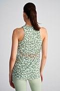 Semi-sheer sleeveless top with scoop neckline in allover leopard print. Relaxed, loose fit for comfort during your training!
