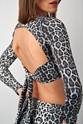 Leopard printed sports crop top with scoop neckline, long sleeves and open back. Features a tie at the back that can be tied either at the hem of the top or wrapped around the waist for a different style. This versatile top is perfect for daily workouts, yoga sessions, or casual everyday looks! Combine it with the sports pants 25841116 for a perfect outfit.