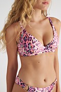 Leopard printed underwired bikini top in cup D. Adjustable straps and clasp fastening at back. Combine it with its bikini bottom 25802482 for a total look.