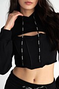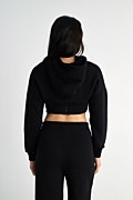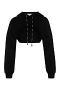 Refresh your streetwear style with this cropped cotton bolero hoodie. Featuring an adjustable drawstring hood, long sleeves and ribbed cuffs for a snug fit. Longer back. The perfect piece or layering over sports bras or tees. Comfortable yet stylish, it adds a chic edge to any casual outfit. Model wears size S/M: Height: 1,79cm, Bust: 80cm, Waist: 62cm, Hips: 92cm.