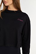 Cotton cropped top with print on the chest and back. Features a scoop neckline and long sleeves. Designed with a relaxed, loose fit. Perfect for wearing from morning to night. Model wears size S: Height: 1,75cm, Bust: 79cm, Waist: 60cm, Hips: 90cm.