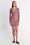 Leopard printed fitted, long sleeved semi-sheer mini dress/kaftan. Front buttons closure and deep 'V' neckline in slim fit. Suitable dress for your everyday summer appearances!