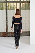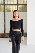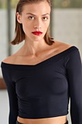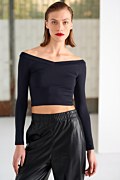 Monochrome cropped top with a V-neck and long sleeves. Slim fit.