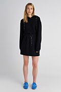 Monochrome cotton mini skirt in straight line. Features a smocked elasticated drawstring waistband for a firm fit and side pockets. Regular fit. Model wears size S: Height: 1,79cm, Bust: 84cm, Waist: 60cm, Hips: 90cm.