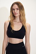 Work out in comfort with this monochrome Sugarfree crop top / sports bra without seams! The athletic back help you feel secure so you can focus on workout for moderate-impact sports. U-neck detail and 'WORK IT OUT' logo at the back. Cropped length. Slim fit. Combine with the biker leggings 25840040 for a perfect look. Model wears size S: Height: 1,77cm, Bust: 86cm, Waist: 60cm, Hips: 90cm.