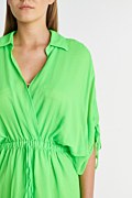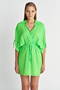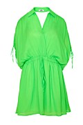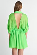 Monochrome mini dress with collar and deep 'V' neckline. Gathered detail with drawstring at the sleeves. Αdjustable drawstring waist in the same fabric and open back. Inner lining. Summer, airy dress for glamorous style!