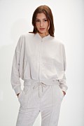 Monochrome velour jacket with collar. Long sleeves, patch pockets on the front and elastic bands in both waist and sleeves. Front zipper closure. Relaxed fit. Combine it with the pants 24831200 for a perfect style.