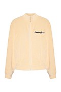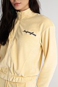 Monochrome velour jacket with collar. Features an embroidered Sugarfree logo on the chest, long sleeves and elastic bands in both waist and sleeves. Front zipper closure. Relaxed fit. Combine it with the pants 25831123 for a perfect style. Model wears size S: Height: 1,78cm, Bust: 80cm, Waist: 62cm, Hips: 91cm.