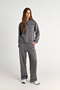 Monochrome wide leg cotton pants. Features side pockets and an elastic waistband with an adjustable drawstring for a firm fit.