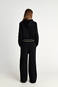 Monochrome wide leg cotton pants. Features an elastic waistband for a firm fit, with white horizontal stripes for contrast and side pockets. The relaxed, loose fit flatters the silhouette while ensuring comfort and effortless style. Pair it with the sweatshirt 25832193 for a perfectly coordinated look. Model wears size S: Height: 1,75cm, Bust: 79cm, Waist: 60cm, Hips: 90cm.