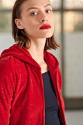 Long sleeved, hooded velour jacket adorned with colorful strass. Patch pockets on the front, double hoodie, strass embellishment at the front and back side, elastic bands in both waist and sleeves, iconic heart zipper and heart stoppers. Relaxed fit. Suitable for all day! Combine it with the pants 24831000 for a perfect outfit.