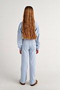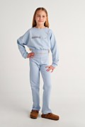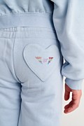 Monochrome cotton track set for girls. Features a cropped sweatshirt with colorful strass embellishment on the front and ribbed elasticated bands in both waist and sleeves. The pants are fitted through the hips with flared hems. Designed with an elasticated waistband for a firm fit and an iconic heart-shaped patch pocket at the back adorned with colorful strass. Regular fit. This set ensures our girls have the perfect outfit every time they wear it. Whether for casual days, school, or special outings, this cotton tracksuit is designed to keep them looking stylish and feeling comfortable all day long. Model wears size 8, height: 1,30cm.