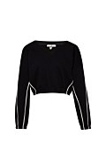 Monochrome cotton cropped sweatshirt with V-neckline. Features long sleeves with elasticated wrist cuffs, piping details on the sleeves with contrast-coloured, an elastic smocked waistband and the iconic Sugarfree logo on the back. Relaxed fit. Suitable to wear all day and night. Combine it with the pants 26811059 for a perfect outfit. Model wears size S: Height: 1,78cm, Bust: 88cm, Waist: 63cm, Hips: 91cm.