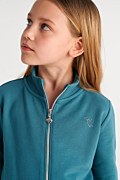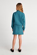 Cotton set for girls adorned with a sparkling heart-shaped strass design on the front, adding a touch of glamour to any outfit. The jacket features a ribbed collar, elastic ribbed bands in both waist and sleeves and a bold, eye-catching rainbow zipper closure. Mini skirt in a straight-fit with an elastic waistband for a firm fit, embellished with a sparkling heart-shaped strass design on the front. Regular fit. This set ensures our girls have the perfect outfit every time they wear it! Model wears size 8, height: 1,30cm.