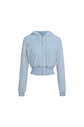 Monochrome cropped velour jacket with wide elastic banded waist. Patch pockets at the front, double hoodie, adjustable drawstring and gold logo heart puller. Heart zipper and heart stoppers. Relaxed fit. Combine it with the pants 26811073 for a perfect style. Model wears size S: Height: 1,78cm, Bust: 88cm, Waist: 63cm, Hips: 91cm.
