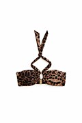 LEOPARD PRINTED BIKINI TOP WITH METAL ACCESSORY