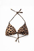 Leopard printed triangle bikini top. Features light padding with removable pads. Ties at the neck and back. Fully lined.