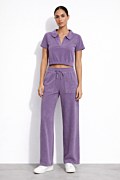 Short sleeved terry monochrome top with collar. Featuring a 'V' neckline, a waistband and iconic Sugarfree logo on the front side. Regular fit. Combine it with the pants 26811066 for a perfect look. Suitable for any time of the day. Model wears size S.