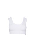 Monochrome ribbed top without seams. Featuring a U-neck, wide straps and iconic SF logo on the front. Cropped length.