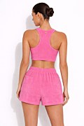 Monochrome terry crop top with scoop neckline and racerback design. Slim fit. Very cropped length. Combine it with the top 26810068 for a perfect look.