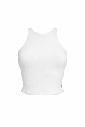 Monochrome sleeveless halter neck ribbed top without seams. Features a scoop neckline, an iconic Sugarfree logo on the front and athletic back. Slim fit. Cropped length.