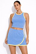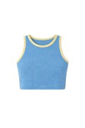 Sleeveless terry cropped top in slim fit. Scoop neckline, decorative SF logo at the front side and athletic back. Very cropped length.