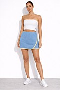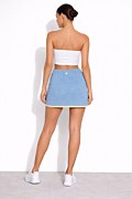 Strapless monochrome ribbed top without seams. Featuring a straight-cut neckline, exposed shoulders, and iconic SF logo on the front. Cropped length.