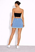 Strapless monochrome ribbed top without seams. Featuring a straight-cut neckline, exposed shoulders, and iconic SF logo on the front. Cropped length.