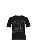 Strass embellished cotton t-shirt with scoop neckline in monochrome style. Regular fit. Suitable for all-day and night wear. Model wears size S: Height: 1,78cm, Bust: 88cm, Waist: 63cm, Hips: 91cm.