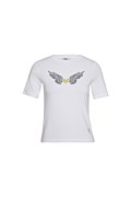Strass embellished cotton t-shirt with scoop neckline in monochrome style. Regular fit. Combined with all your clothes to wear it all day! Model wears size S: Height: 1,78cm, Bust: 81cm, Waist: 61cm, Hips: 89cm.