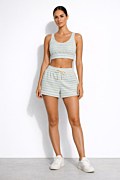 Terry shorts with horizontal stripes. Features a banded drawstring waist and side pockets. Adorned with sparkling heart-shaped strass on the cuff, adding a touch of glamour to any outfit. Regular fit. Combine it with the top 26812072 to impress with your perfect look.