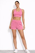 High waisted monochrome terry shorts in wide leg. Elastic waistband for a firm fit and side patch pockets. Loose fit. Combine it with the top 26812068 and you will impress with your perfect look.