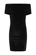 Elevate your style with this off-the-shoulder mini velour dress, designed for a feminine and sophisticated look. Features a foldover straight neckline and off-the-shoulder design. Slim fit. Cropped length. Perfect for evening occasions!