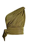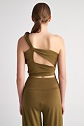 One shoulder monochrome crop top. Draped design in the front. Cut-outs details at the back. Drawstring details on the side that ties with bow. Combine it with the pants 23811150 for a perfect look! Model wears size S: Height: 1,71cm, Bust: 82cm, Waist: 65cm, Hips: 92 cm.