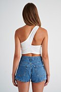 Monochrome fitted one shoulder elastic rib crop top. Slim fit.