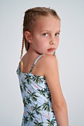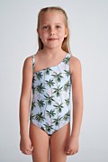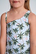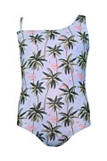 One shoulder onepiece swimsuit for girls. Allover printed and full back coverage.
