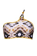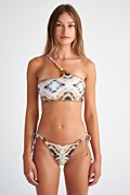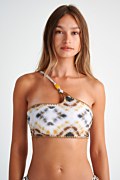 Printed, one shoulder bikini crop top. Featuring a crochet zigzag details stitching along the edges. Light padding with removable pads. Clasp at back. Lining. Combine it with its bikini brief 24802440 for a total look.