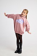 Hooded long-sleeved cotton dress/top in loose fit for girls. Features strass embellishment on the front and elastic finishes at the hem and cuffs. Relaxed, loose fit. Model wears size 8: Height: 1,30cm.