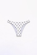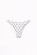 Low rise brazilian bikini brief in allover polka dot print. Features a wide waistband in hipster style. Low back coverage.