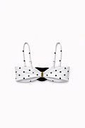 POLKA DOT STRAPLESS BIKINI TOP WITH DETACHABLE FLORAL CORSAGE