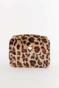 Faux fur pouch/cosmetic bag. Features a Sugarfree logo on the front and a single, spacious main compartment with inner lining. Top zip closure. Dimensions: Length 11 x Width 21 x Height 20 cm.