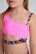 Swimwear bikini set for girls. Printed bikini top, adjustable strap and cut-out at side without clasp. The brief is fully back coverage.